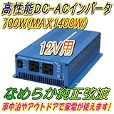 DC12V用700W AC100V正弦波インバーター ケーブルセット 50Hz/60Hz周波数切替式 リモートポート付 日本メーカー製